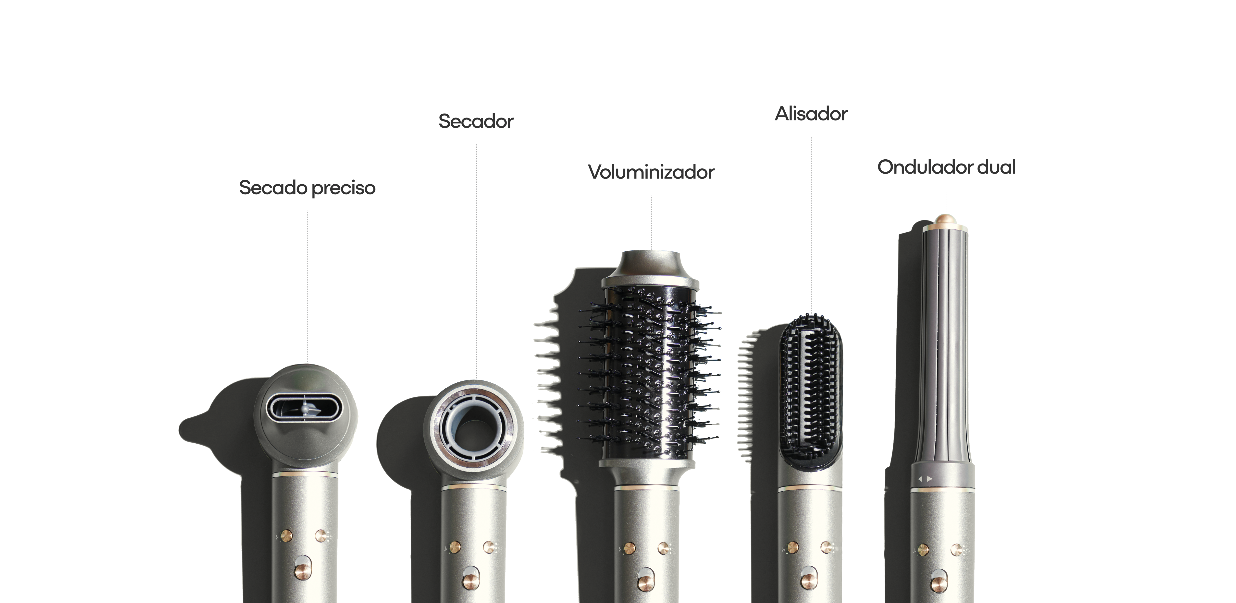 - 5 accesorios para ondas, brushing, alisado con aire y secado rápido.